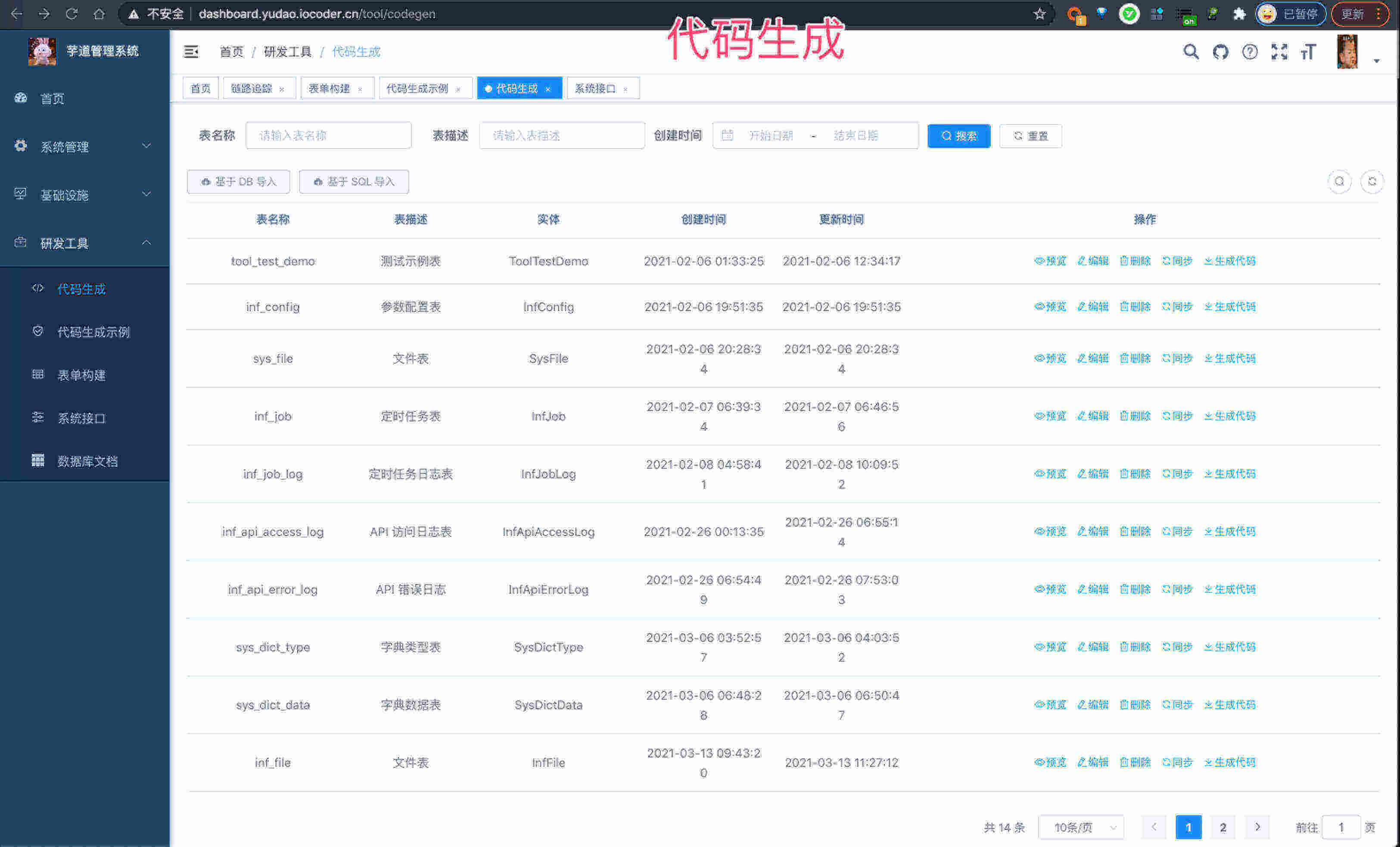 | 菜单管理 | 配置系统菜单、操作权限、按钮权限标识等,本地缓存提供性能 | |