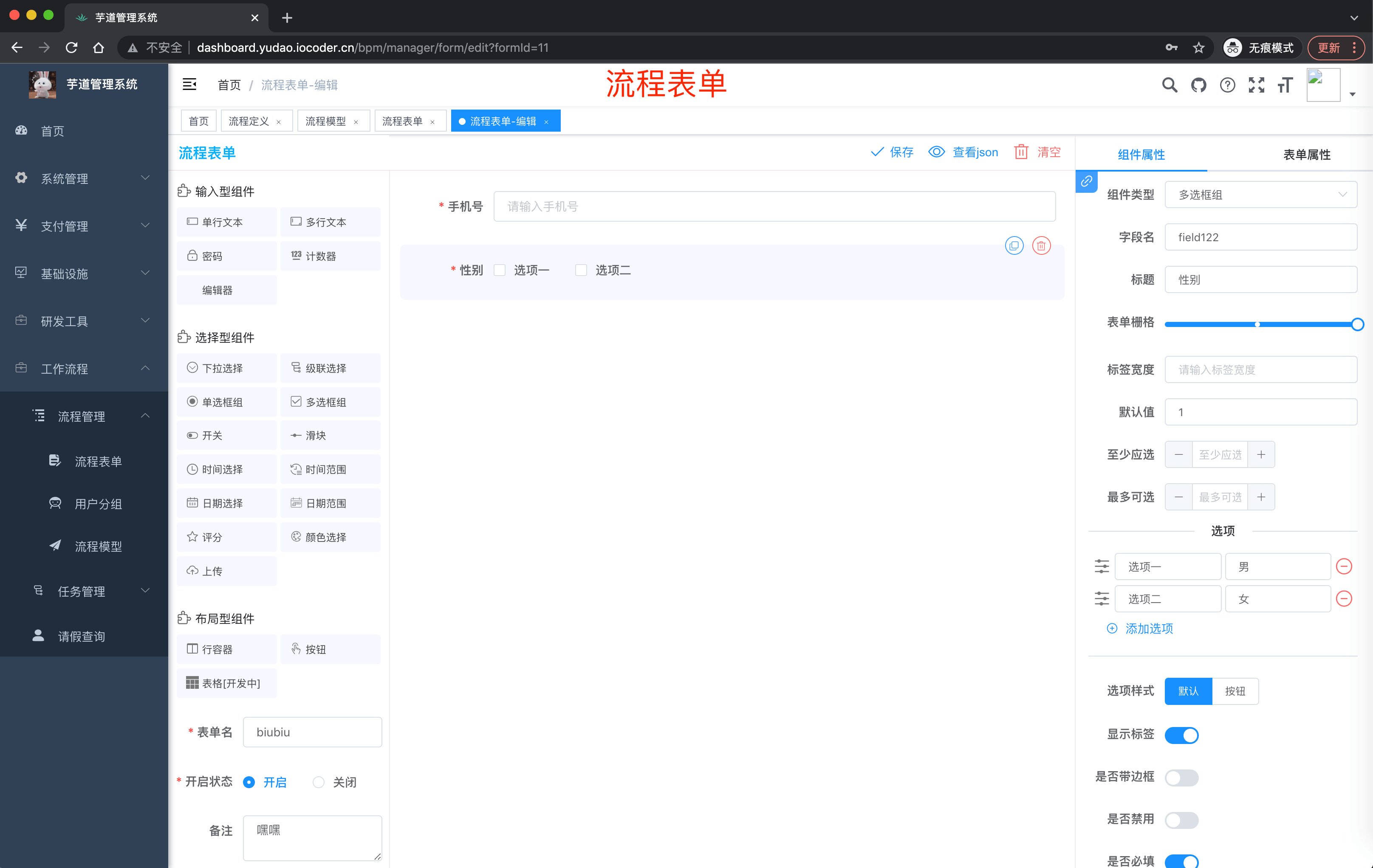 | BPMN 设计器 | 基于 BPMN 标准开发,适配复杂业务场景,满足多层级审批及流程自动化需求 | ✅ |